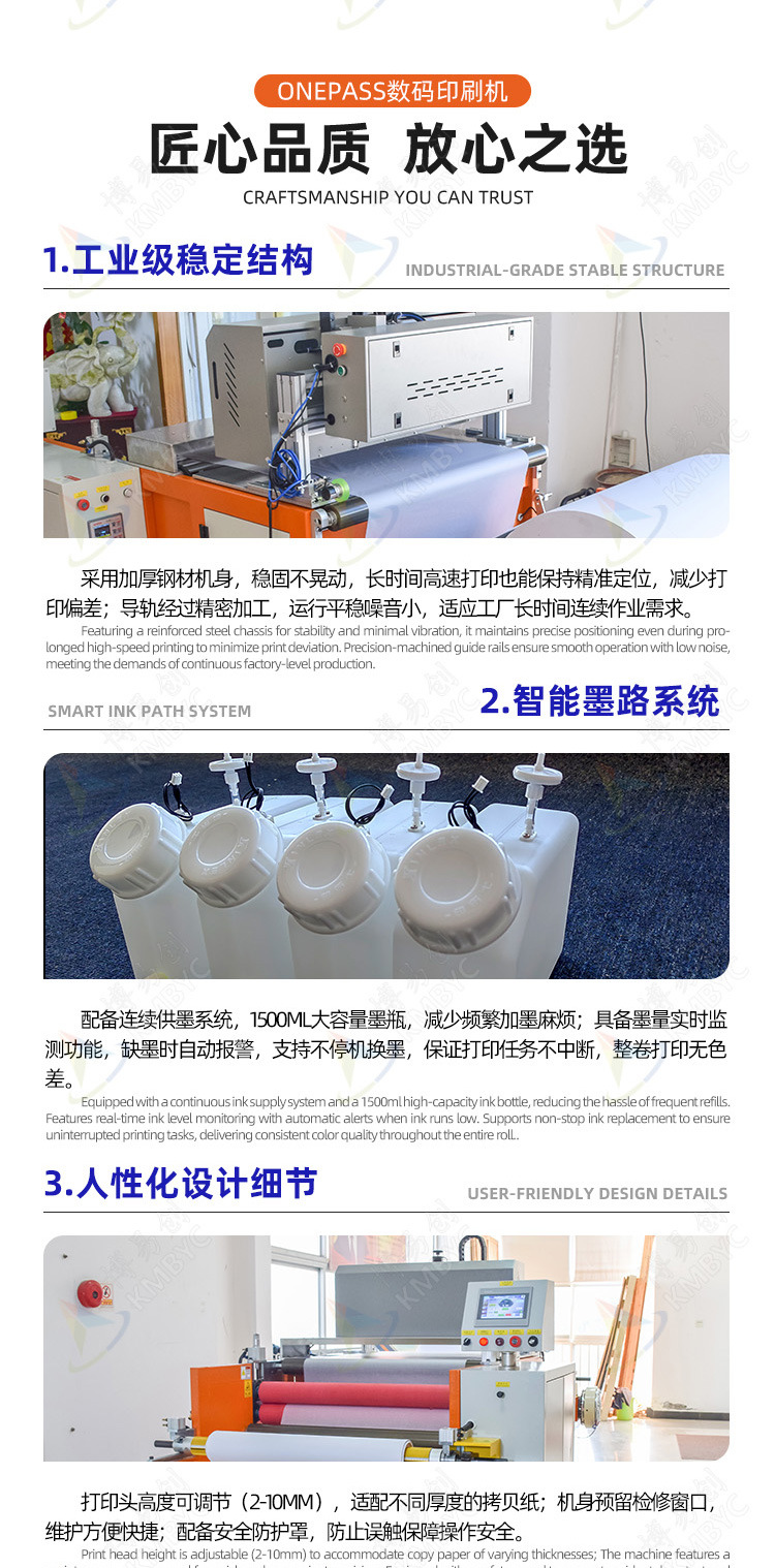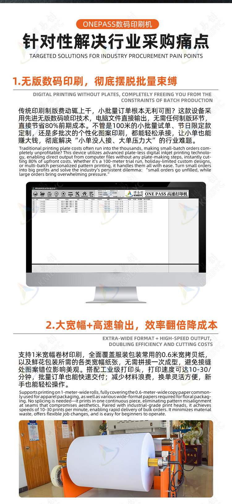 简单介绍:雪梨纸卷对卷UV打印机是薄型包装纸印刷的专用解决方案,通过微张力控制、低渗透墨水、高精度喷头等技术,解决了雪梨纸“易透墨、易褶皱、难定制”的痛点,尤其适合个性化礼品包装、食品衬纸、文创产品等小批量、高附加值场景。选择时需重点关注薄纸适配性(张力系统、喷头精度)、墨水安全性(食品级认证)、售后服务(喷头维修成本),并根据业务需求(幅宽、速度、墨水类型)匹配机型。随着个性化消费兴起,该设备将成为包装印刷行业“小而美”定制订单的核心生产力工具。